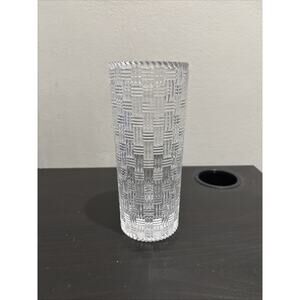 TIFFANY & CO Woven Basketweave Cylinder 8" Crystal Glass Vase Made In Germany