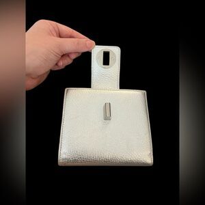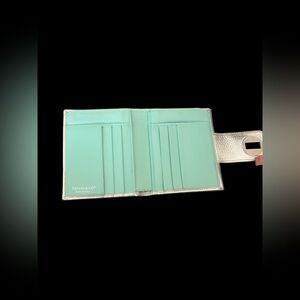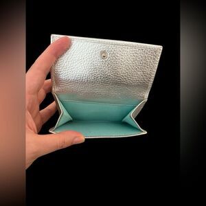 Stunning silver turn lock bifold wallet with classic Tiffany blue interior. Small scuffing on the back and som rubbings on corners. Inside is pristine. Only used a few times