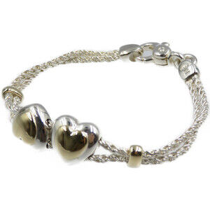 TIFFANY Double Heart Rope Chain Silver 925 K18 Gold Bracelet
