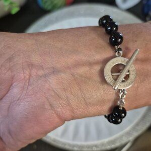 TIFFANY Sterling Silver Black Onyx Bead Toggle Bracelet