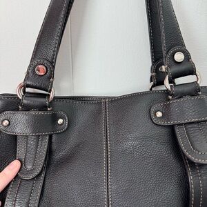 TIGANELLO Perfect 10 Pebble Leather Studded Handbag Shoulder Bag Black