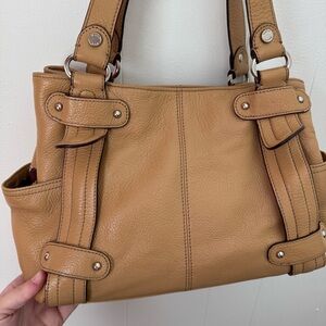 TIGANELLO Perfect 10 Pebble Leather Studded Handbag Shoulder Bag Camel Brown