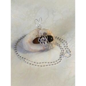 GENUINE TIGERS EYE STONE PENDANT SILVER WIRE WRAPPED THUS PENDANT IS ONE OF A KIND AND HANDMADE BY ME IN MY WORKSHOP.