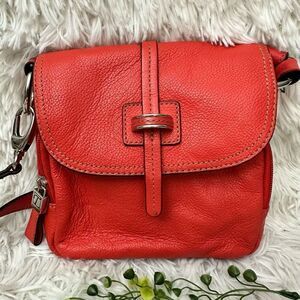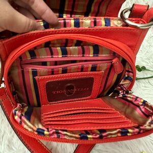 TIGNANELLO Bright Coral Pebbled Leather Crossbody Mini Organizer Bag