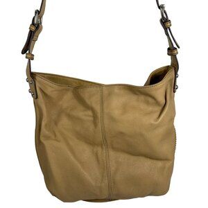 TIGNANELLO Camel Tan Leather Zipper Magnetic Closure Hobo Saddle Shoulder Bag