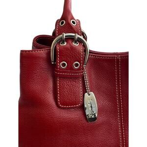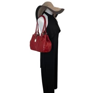 This like new TIGNANELLO Dark Cherry Red Pebbled Leather Bag is in excellent condition with no call outs. This gorgeous statement bag features a beautiful leather exterior with amazing handles and stunning silver toned hardware. The clean interior has 1 zipper pocket and 2 open pockets. This bag goes from day to night with your favorite jeans and boots! It will add a touch of sass and sophistication to every outfit and it's perfect size makes it a bag you'll reach for over and over again.