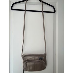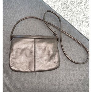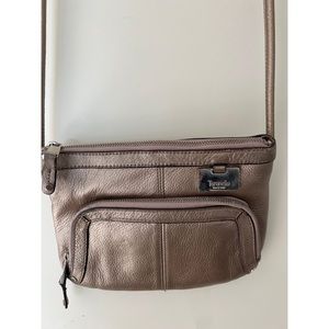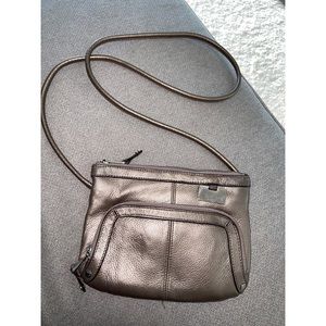 Preloved TIGNANELLO metallic gold leather crossbody. Interior zip pocket. The purse shows some signs of wear with tons of life left.