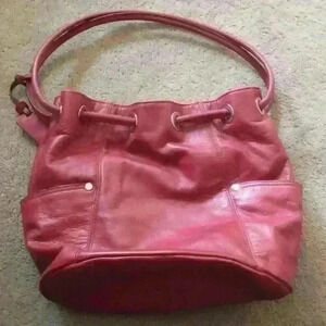 TIGNANELLO RED SOFT 100% LEATHER SHOULDER BAG. THIS HAS BEEN GENTLY USED A FEW TIMES. IN GREAT PRE-OWNED CONDITION. PLEASE NOTE I BELIEVE A WATER MARK ON OUTSIDE OF BAG AS SHOWN....NOT VERY NOTICEABLE. MAGNETIC CLOSURE. 2 OUTSIDE POCKETS ON EACH END OF BAG. SLIP POCKET INSIDE ALONG WITH TWO ZIPPERED COMPARTMENTS. PLEASE SEE PICTURES FOR MEASUREMENTS. NON SMOKING NON PET HOME.