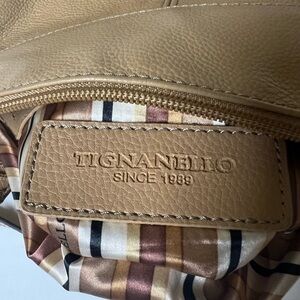 TIGNANELLO TAN LEATHER CROSSBODY BAG 9”x 8” STRIPED INTERIOR LINING