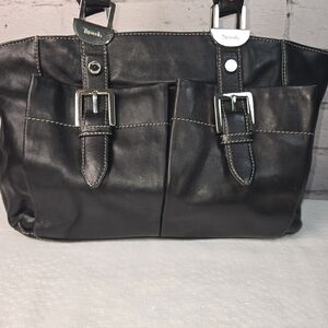 TIGNANELLO VINTAGE BLACK LEATHER SHOULDER BAG MULTIPLE POCKETS INSIDE AND OUT