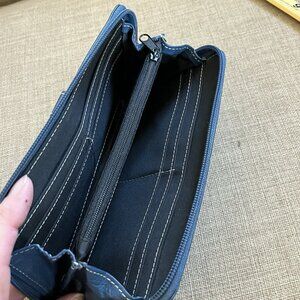 TIGNANELLO Womens Blue Leather Zip Around Wallet Clutch Card Slots Key Ring