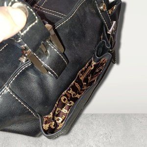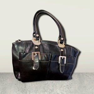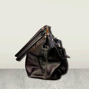 TIGNANELLO • black Leather purse metallic snaps taupe trim soft spacious women's