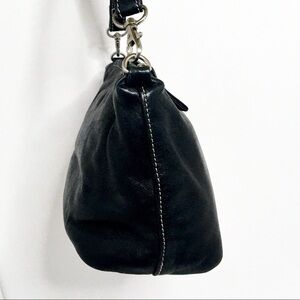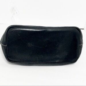 TIGNANELLO tastefully understated black glove leather mini bag with zipper closure. Soft, supple glove leather, zippered pocket and slot pocket inside. Detachable strap. Perfect for when you want to travel light! Big enough for a checkbook size wallet, brush/comb, phone - the basics!