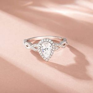 ✦ Delicate Design- This wedding ring features teardrop shaped, halo cz with twisted pave band ring, super elegant, will never go out of style