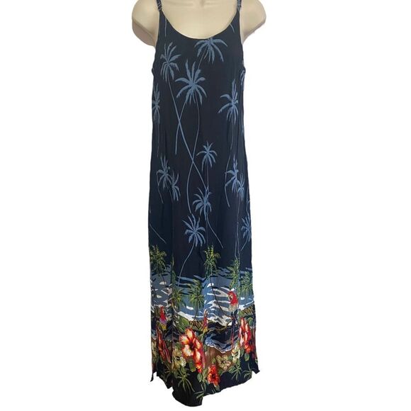 TIKI PALM Black Parrot Palm Tree Print Sequin Maxi Beach Dress