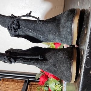 TILA MARCH PARIS Size 39 Black Suede Wedge Heel