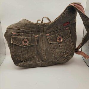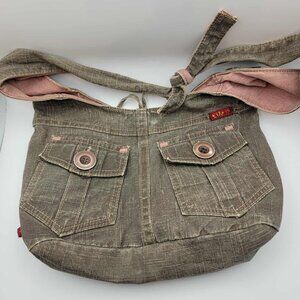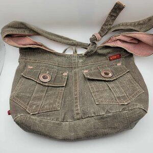 TILT Worn Brown Jean and Pink Lined bag/purse