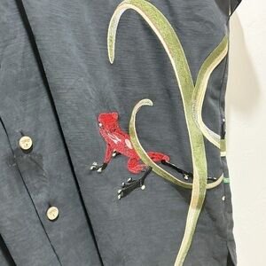 TIM COTTERILL Artist The Frogman Men’s Black 100% Silk Frog Embroidery Shirt XXL