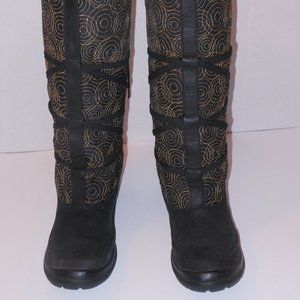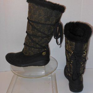 TIMBERLAND BLACK AND GOLD LEATHER AND FAUX FUR KNEE-HIGH BOOTS SIZE 6.5 MEDIUM