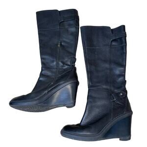 TIMBERLAND Boots Black Wedge Heel Leather knee high buckle detail SZ 9.5