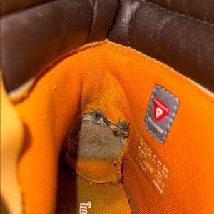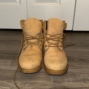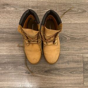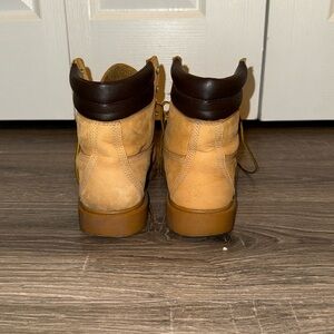 Timberland lace up waterproof boots. Have wear on the back of the heels.