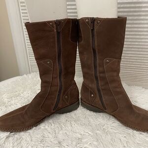 TIMBERLAND COMFORIA BROWN MIDCALF SUEDE ZIP BOOTS , size 7.5 M
