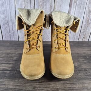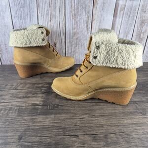 TIMBERLAND Earthkeepers Amston Roll Top Cozy Wedge Boots Women's Sz 8 Wheat Tan