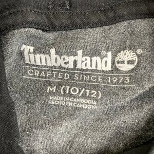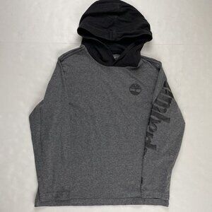 TIMBERLAND Hooded T-Shirt Youth Boys M(10-12) Long Sleeve Spellout Gray Black