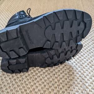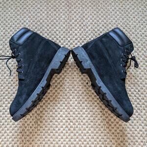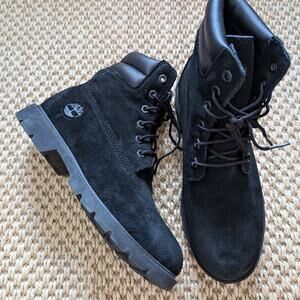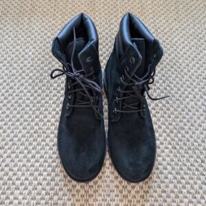 This is a pair of women's Timberland Linden Woods waterproof boots in size 6.5. Black suede. Never used, but a floor model. No box.