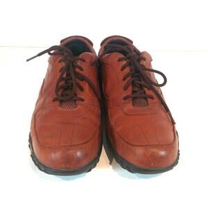 Lace up brown genuine leather oxford low top shoes. Brown color. Good preowned condition.