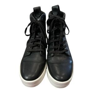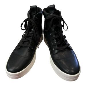 Timberland women's "Mayliss" black, leather, hi-top sneakers.