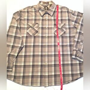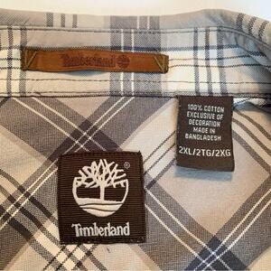 TIMBERLAND Mens Shirt 2XL Brown Tan Plaid 100% Cotton Long Button Front Outdoor