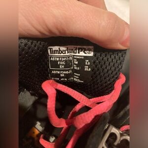 Waterproof boots. Black. With hot pink laces. Great shape a little Nick on the leather on top of one of the shoes. Teeny bit of dirt here and there that you can wash off. Otherwise great shape shape.