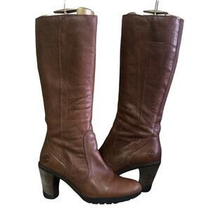 TIMBERLAND Stratham Tall Brown Grained Leather WP Knee Zip Boots Size 7