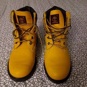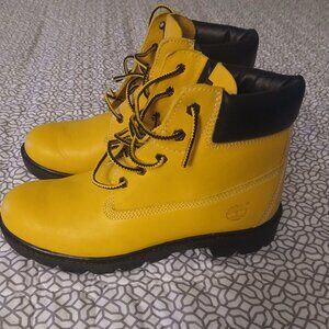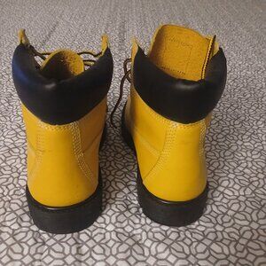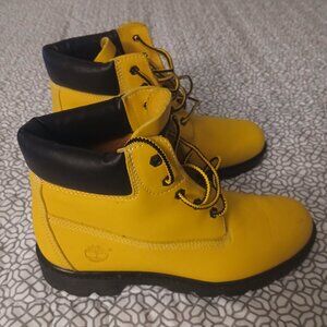 Wonderful pre-owned Timberland yellow leather boots. Size 8M. EXCELLENT condition! Very loved condition. Still look new on bottom.