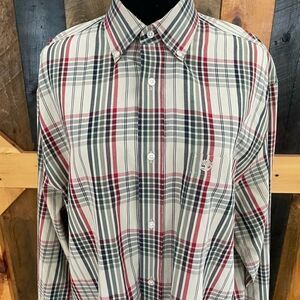 TIMBERLAND plaid button collar button down 100% cotton shirt, size L