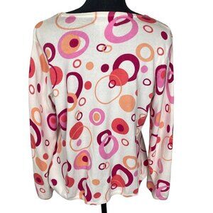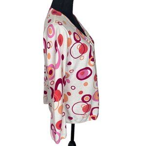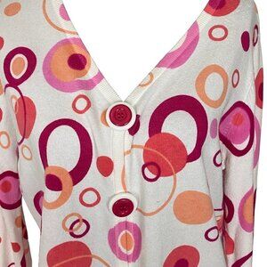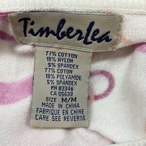 TIMBERLEA Sweater Button Front Long Sleeve White Pink M 63-9