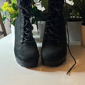 Never worn in Timberland heeled wedge boots. Stitching is perfect and no scuffs are pictured so price is firm. All black