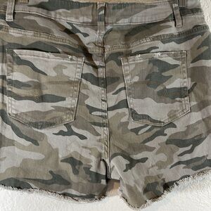 TIME AND TRU HIGH RISE CAMOUFLAGE RAW HEM DISTRESSED BUTTON FLY SHORT SIZE 18