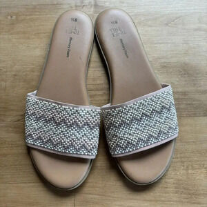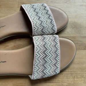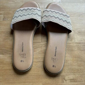 TIME AND TRU MEMORY FOAM Pink Embellished Band Flat Heel Slide Sandals Sz 8.5