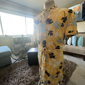 The TIME AND TRU Size L Midi Dress is a versatile and stylish garment that can be worn for various occasions, from casual outings to formal events. This sleeveless shirtdress features a square neckline and a pullover closure, making it easy to put on and take off. Made from a blend of rayon and cotton, the dress is comfortable to wear in warm weather. The vibrant yellow color sleeve design make it a standout choice for summer and spring ensembles. Plus, the inclusion of pockets adds both style and functionality to this A-line dress.