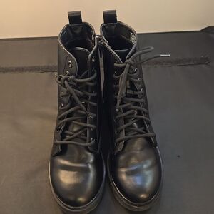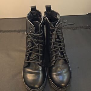 TIME AND TRU LACE UP WOMEN'S ROUND TOE BOOTIES SIZE 6 COLOR BLACK MADE WITH ALL MAN-MADE SINTETICO ALL MAN-MADE MATERIALS SIDE ZIPPER CLOSURE HEEL HEIGHT MEASUREMENTS APPROX 1"1/2INCHED THIS ITEMS IS PRE-OWNED EXCELLENT CONDITION WITH ONLY LIGHT SIGNS OF WEAR IF ANY CHECK THE PICTURES