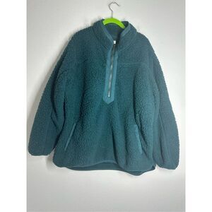 TIME AND TRU WOMEN'S GREEN 1/2 ZIP-UP FELTED FLEECE JACKET SIZE 2X Pockets