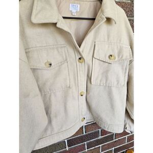TIME AND TRU Womens Large Oversized Shacket Shirt Jacket Cream Button Wool Blend
