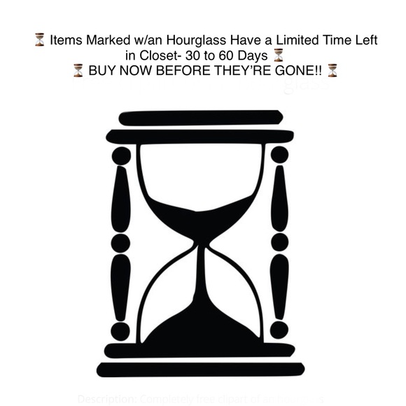 ⏱. Time is runnng out! AT LEAST twice a year (March & October), I thin out listings- IF the listing has an hourglass it’s’ time for Posh is short. Make a reasonable offer and let’s make a deal!!