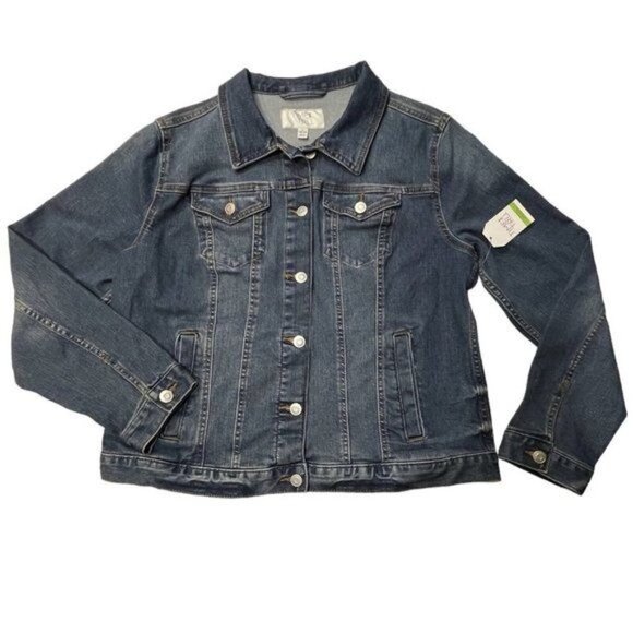 TIME & TRU Jean Jacket Stretch Denim Women's Medium (8-10) Blue Medium Wash NWT