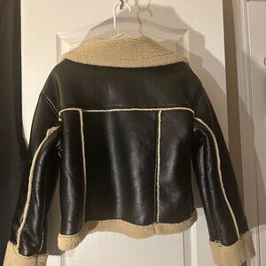 This Faux Leather Jacket with a Wool feeling inside for warmth is a real looker. Stylish offers a feel of cozy shearling fleece lining and trims. Princess seams add a flattering finishing touch. 2 Pockets on each side.