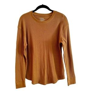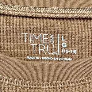 TIME & TRU, WOMENS, LONG SLEEVE THERMAL TOP. CREW NECK, PULL ON, ROUNDED BOTTOM, MEDIUM BROWN COLOR. SIZE L(12-14)
