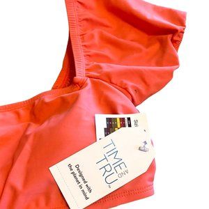 TIME & TRU Womens Plus 3X 24W-26W Peach Glow Halter Puff Sleeve Bikini TOP NWT