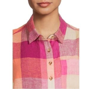 TIME and Tru Women's Half Button Sleeveless Top In Shocking Pink Large 12/14 New